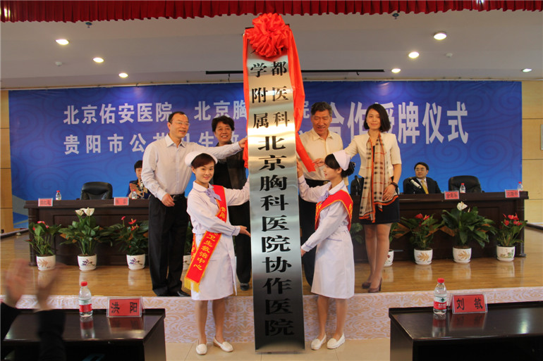 北京佑安醫(yī)院、胸科醫(yī)院將在醫(yī)院管理、臨床醫(yī)療、科研教學(xué)等方面對公衛(wèi)中心進(jìn)行合作指導(dǎo),共建京筑傳染病防控協(xié)作體系;建立醫(yī)療機(jī)構(gòu)見預(yù)約轉(zhuǎn)診、雙向轉(zhuǎn)診機(jī)制和疑難危重病人轉(zhuǎn)診的“綠色通道”,開展介入醫(yī)學(xué)科、婦產(chǎn)科、重癥醫(yī)學(xué)科等臨床學(xué)科建設(shè)。提升貴陽市公共衛(wèi)生救治中心的專科技術(shù)水平。貴陽市副市長劉玉海出席授牌儀式,劉市長對三家醫(yī)院合作寄予了厚望,希望通過建立長期穩(wěn)固的合作關(guān)系,穩(wěn)步提高醫(yī)療技術(shù)水平和管理水平,提升醫(yī)學(xué)人才培養(yǎng)平臺,改進(jìn)和完善醫(yī)院功能,拓展醫(yī)療市場和發(fā)展空間,實(shí)現(xiàn)醫(yī)院更好更快發(fā)展。
