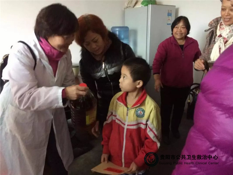 一大早,天還下著毛毛雨,支部黨員們早早來到集合點,把慰問物資、藥品及醫(yī)療用品搬上車準時驅(qū)車前往目的地?;顒臃殖扇齻€小組:其中結(jié)核科、呼吸內(nèi)科專家張廷梅主任醫(yī)師來到息烽縣人民醫(yī)院為基層醫(yī)務工作者專題授課、進行疑難病例大查房、協(xié)助診斷制定治療方案。第二組骨科主治醫(yī)師周波帶隊在息烽縣十字街開展義診咨詢和健康知識宣傳。工作人員有的為群眾老鄉(xiāng)測量血壓,有的發(fā)放宣傳資料,積極開展宣傳多發(fā)病、常見病的預防治療知識。第三組由農(nóng)工黨花果園院區(qū)支部書記、手術(shù)室護士長李麗萍組織黨員同志在息烽統(tǒng)戰(zhàn)部同志帶領下走訪慰問了10戶貧困家庭,為他們送去米、油生活必需品,并鼓勵他們勇敢面對困難,增強生活信心?;顒庸灿嬞浰蜕钣闷穬r值2000余元,發(fā)放義診藥品價值1000余元。