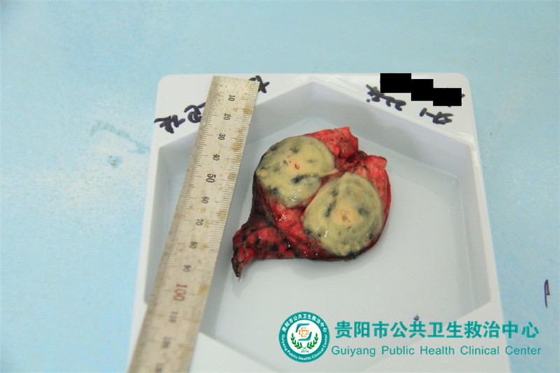 手術(shù)經(jīng)過:麻醉生效后,患者取左側(cè)臥位,取右側(cè)第4肋腋前線為手術(shù)切口,長度約4cm,進入胸腔,胸腔鏡探查胸腔無粘連,并予右肺上葉后段探及直徑約3cm質(zhì)韌腫塊,胸膜表面無結(jié)節(jié),余肺未探及明顯病變,予直線切割吻合器沿病灶組織連同少許正常肺組織行楔形切除,完整切除病灶,送冰凍切片回示:結(jié)核。手術(shù)用時僅半小時,出血約5ml,單一切口約4cm,術(shù)后第一日即達到出院標(biāo)準。