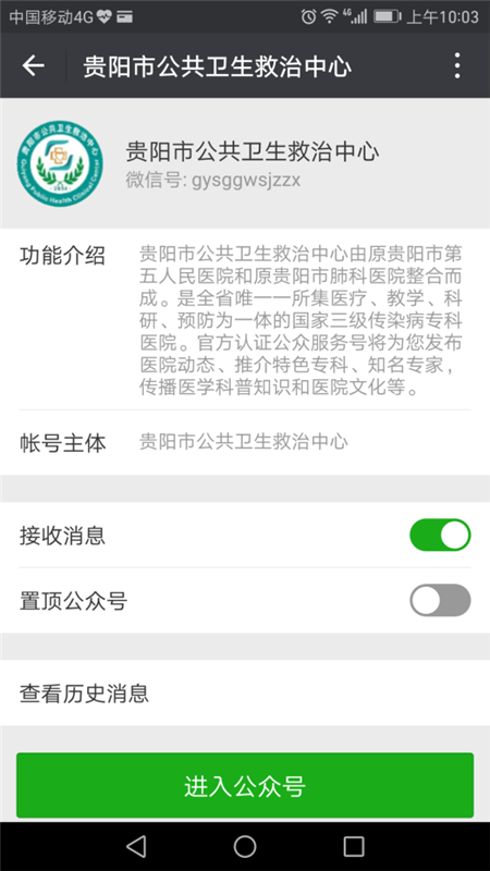 第一步:關(guān)注“貴陽市公共衛(wèi)生救治中心”公眾微信號