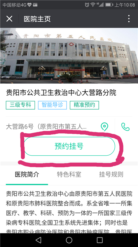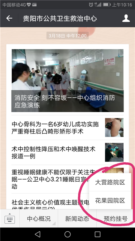 第二步:進入公眾號,點擊右下角“預(yù)約掛號” → 選擇大營路院區(qū)或花果園院區(qū) 第三步:進入“醫(yī)院主頁”→點擊“預(yù)約掛號” 第四步:進入科室選擇頁面,選擇您需要就診的科室、專家、就診時間 就是這么簡單!