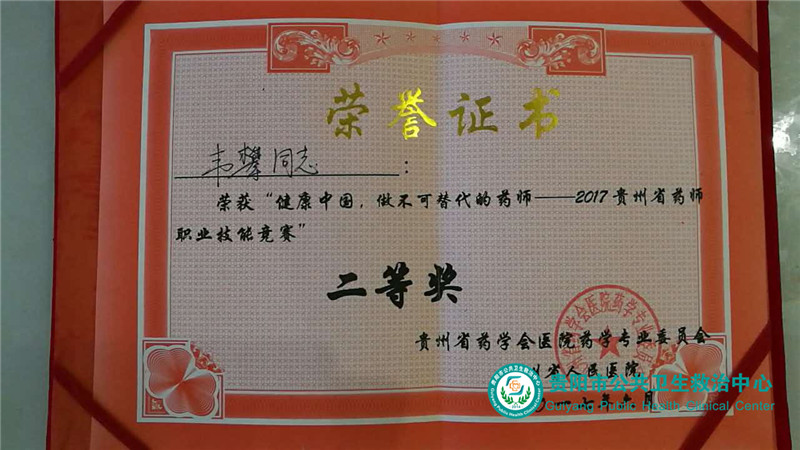 我院派出了3名優(yōu)秀藥師參賽,經(jīng)過筆試、現(xiàn)場模擬口試比賽及搶答賽3個環(huán)節(jié)的較量,韋攀同志進入前12名并作為貴陽地區(qū)代表之一參加了