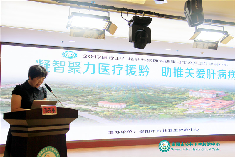 中心黨委書記劉建西同志首先致歡迎辭,向遠道而來的專家表示熱烈的歡迎和誠摯的敬意,并表示我院將通過不斷改善硬件設施和加強健康教育,致力于規(guī)范肝炎的診療行為、提高診治水平。隨后,援黔專家、首都醫(yī)科大學附屬北京地壇醫(yī)院肝病科三科主任、醫(yī)學博士、博士研究生導師邢卉春教授主講《慢性丙型肝炎流行病學及治療進展》。通過對丙肝流行及治療現(xiàn)狀、DAA治療進展及注意事項、標準抗病毒治療等專題介紹,圍繞肝病診療領域的新理念、新技術和新知識等主題作了精彩講座。邢教授專業(yè)、實用的講課內(nèi)容令參學人員獲益匪淺。