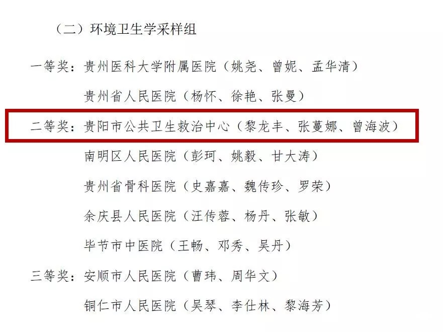 公衛(wèi)中心唐忠琴、劉佳同志獲個(gè)人防護(hù)組二等獎(jiǎng),黎龍豐、張蔓娜、曾海波同志獲環(huán)境衛(wèi)生學(xué)采樣組二等獎(jiǎng)。