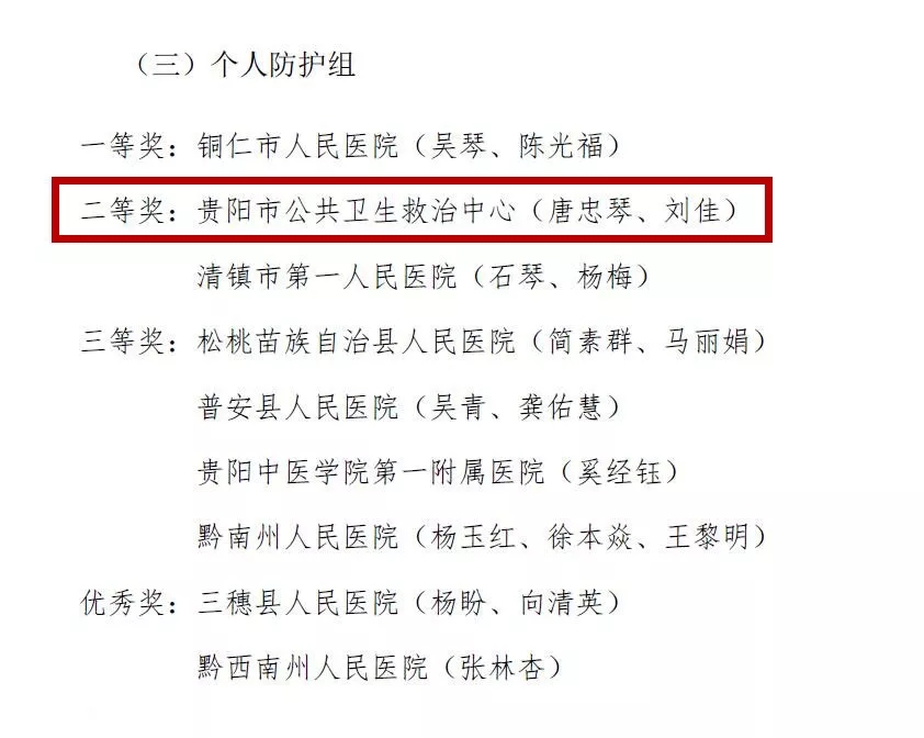 公衛(wèi)中心唐忠琴、劉佳同志獲個人防護(hù)組二等獎,黎龍豐、張蔓娜、曾海波同志獲環(huán)境衛(wèi)生學(xué)采樣組二等獎,江淼同志獲器械物品清洗技能組三等獎。