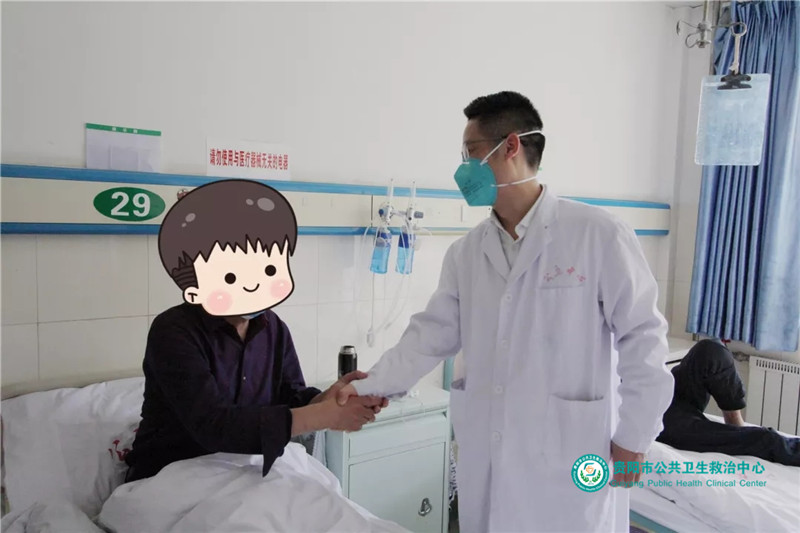 2019年4月9日下午,中心副主任梁躍東帶領(lǐng)結(jié)核科項(xiàng)目專家組所有醫(yī)護(hù)人員,來到陳鑫的床旁。結(jié)核病診療質(zhì)控中心主任蔡翠為陳鑫進(jìn)行全面細(xì)致的檢查,詳細(xì)講解NDIP項(xiàng)目的背景以及藥品使用的注意事項(xiàng)。梁躍東主任親手將新藥送到陳鑫手中,第一次服下了400mg富馬酸貝達(dá)喹啉之后,陳鑫激動(dòng)地向在場(chǎng)的人員表示感謝,并表示一定積極配合醫(yī)生的治療,按時(shí)服藥、定期隨訪,和醫(yī)生共同努力戰(zhàn)勝疾病。