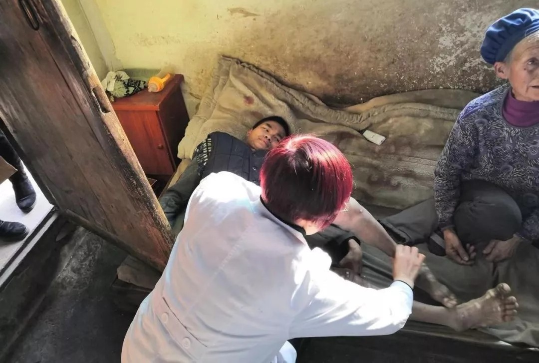 貧困戶白江濤,20歲,13年前因“脊髓灰質(zhì)炎”致四肢畸形,多年就醫(yī)已耗盡家中積蓄,目前生活無法自理。家里僅靠其75歲高齡爺爺奶奶勉強(qiáng)度日,由于家中缺少勞動(dòng)力,生活異常艱難。
